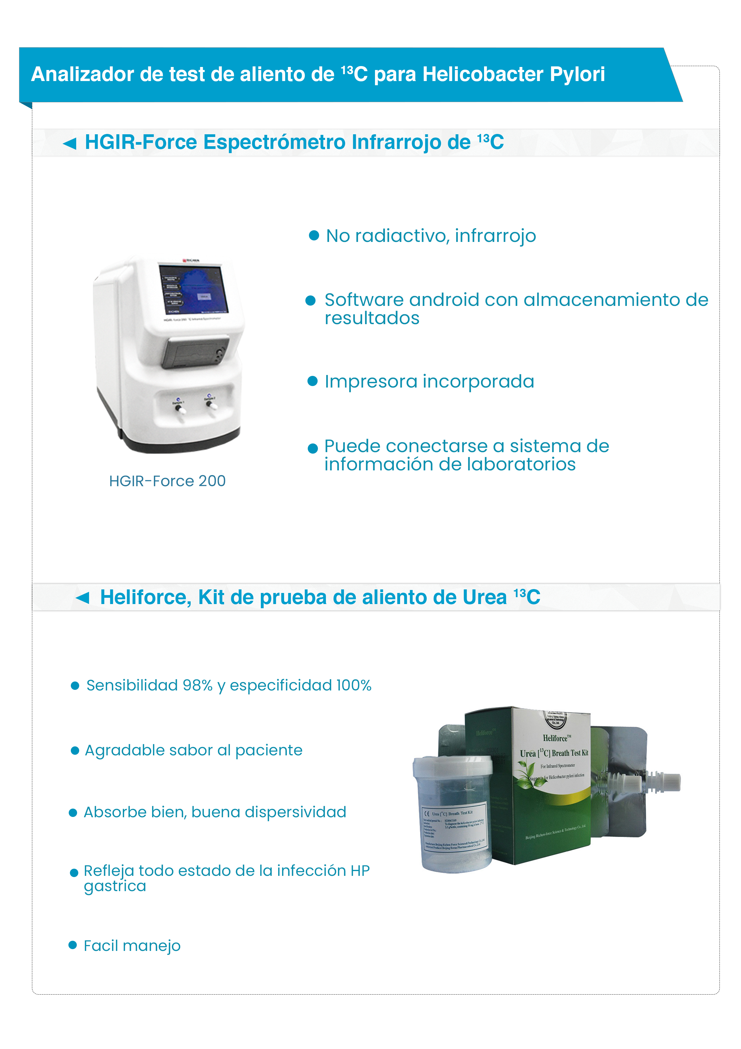 Espectrometría infrarroja 13C para detección específica de Helicobacter pylori.